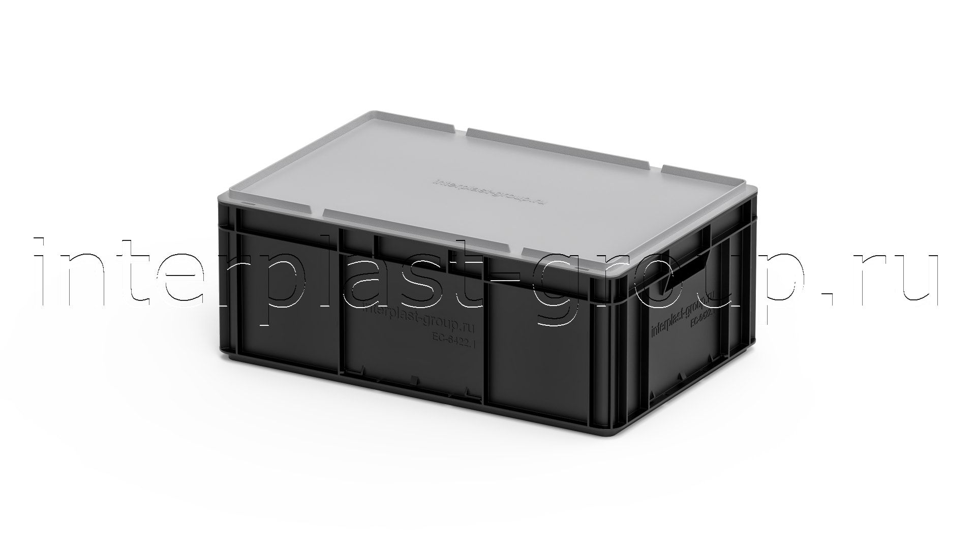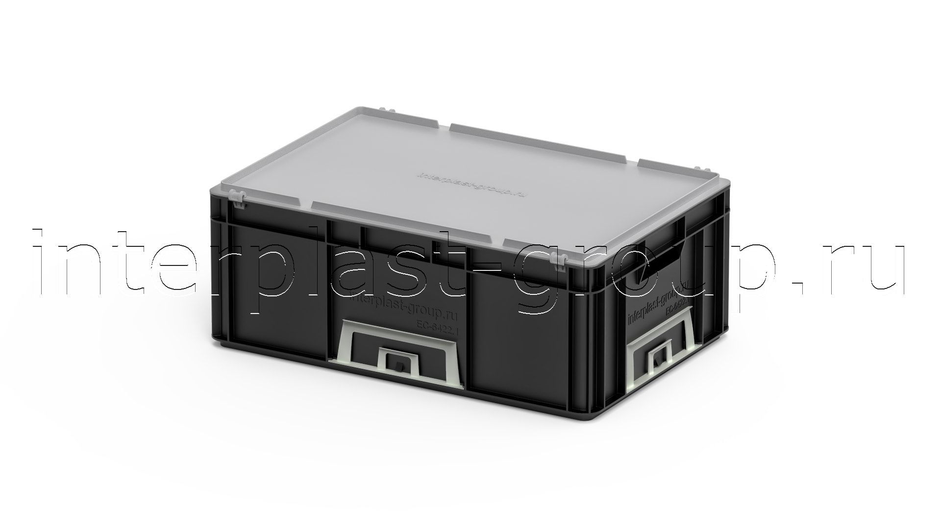 Евроконтейнер открытые ручки/сплошное дно (черный), 600x400x220 мм