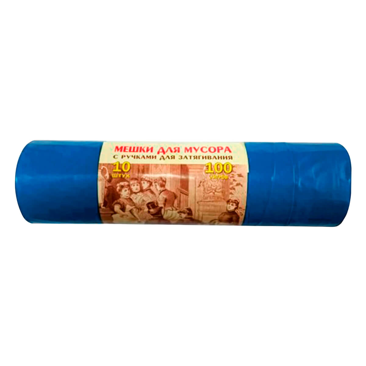 Мешки для мусора 100 л, с завязками, синие, в рулоне 10 шт., ПВД, 40 мкм, 840х670 мм, Концепция Быта Vitalux, 604933