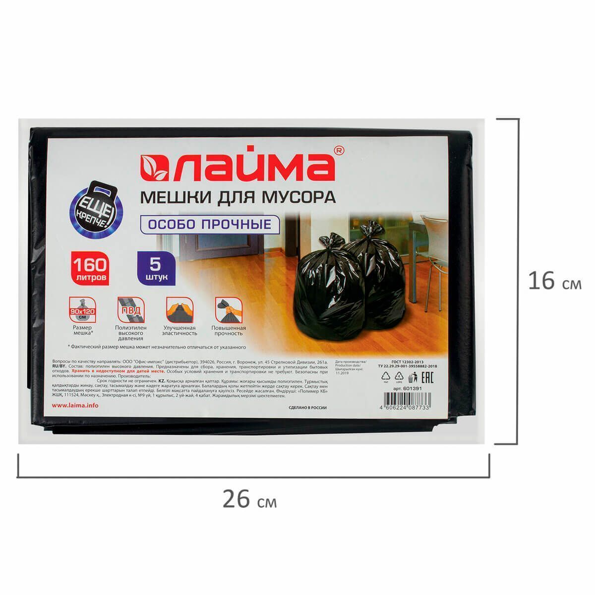 Мешки для мусора LAIMA - надежные защитники чистоты и порядка! Эти черные гиганты объемом 160 литров предназначены для сбора, хранения и утилизации бытовых отходов. Они находят свое применение в офисах, домах, в строительстве, медицине, супермаркетах и даже на улице в специальных урнах для мусора.