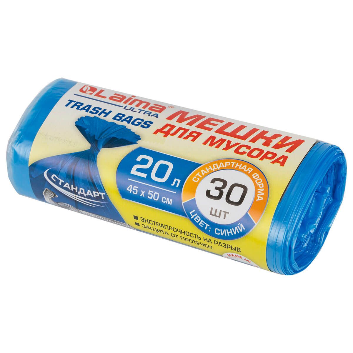 Мешки для мусора 20 л, синие, в рулоне 30 шт., ПНД, 8 мкм, 500х450 мм, LAIMA, 607682 в Ялте
