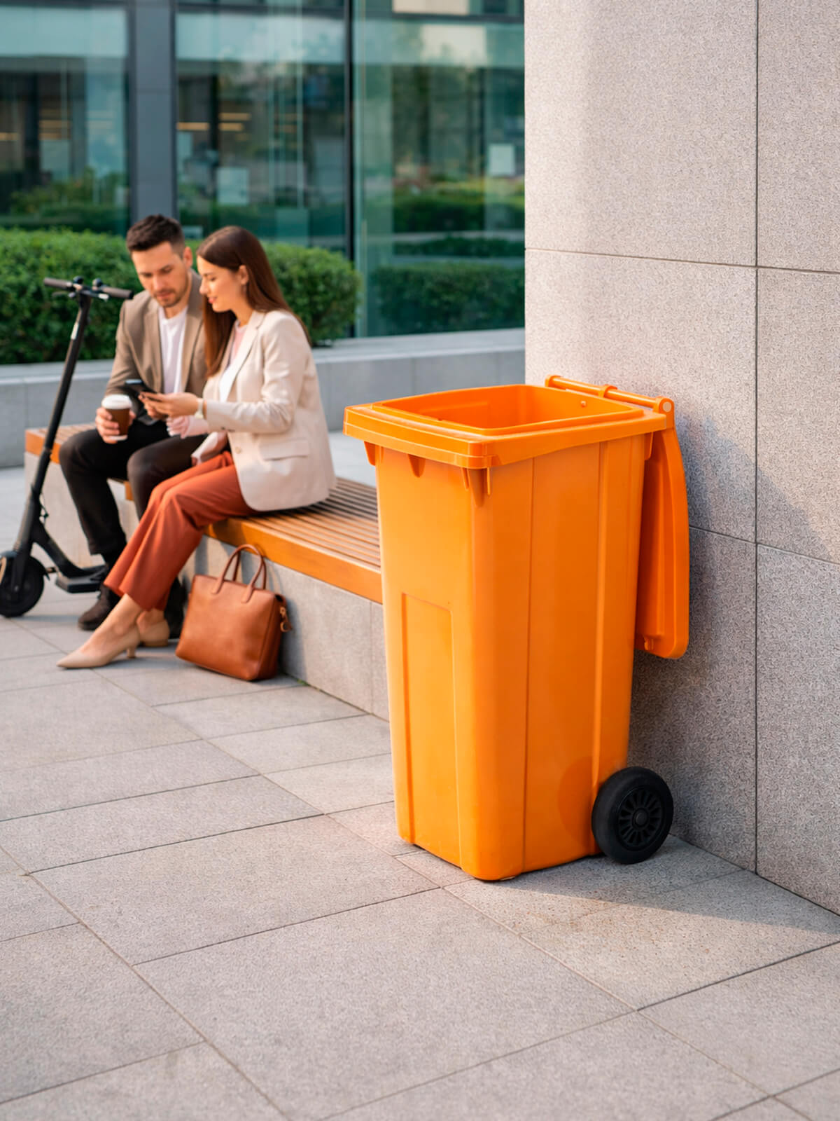 Оранжевый контейнер для мусора 120 л — это решение, созданное для объектов, где важны высокая видимость, порядок и структурированный сбор отходов. Такой мусорный контейнер уличный часто используют на производственных территориях, в коммунальных службах, на стройплощадках, парковочных зонах и в частном секторе, где требуется контрастная маркировка.
