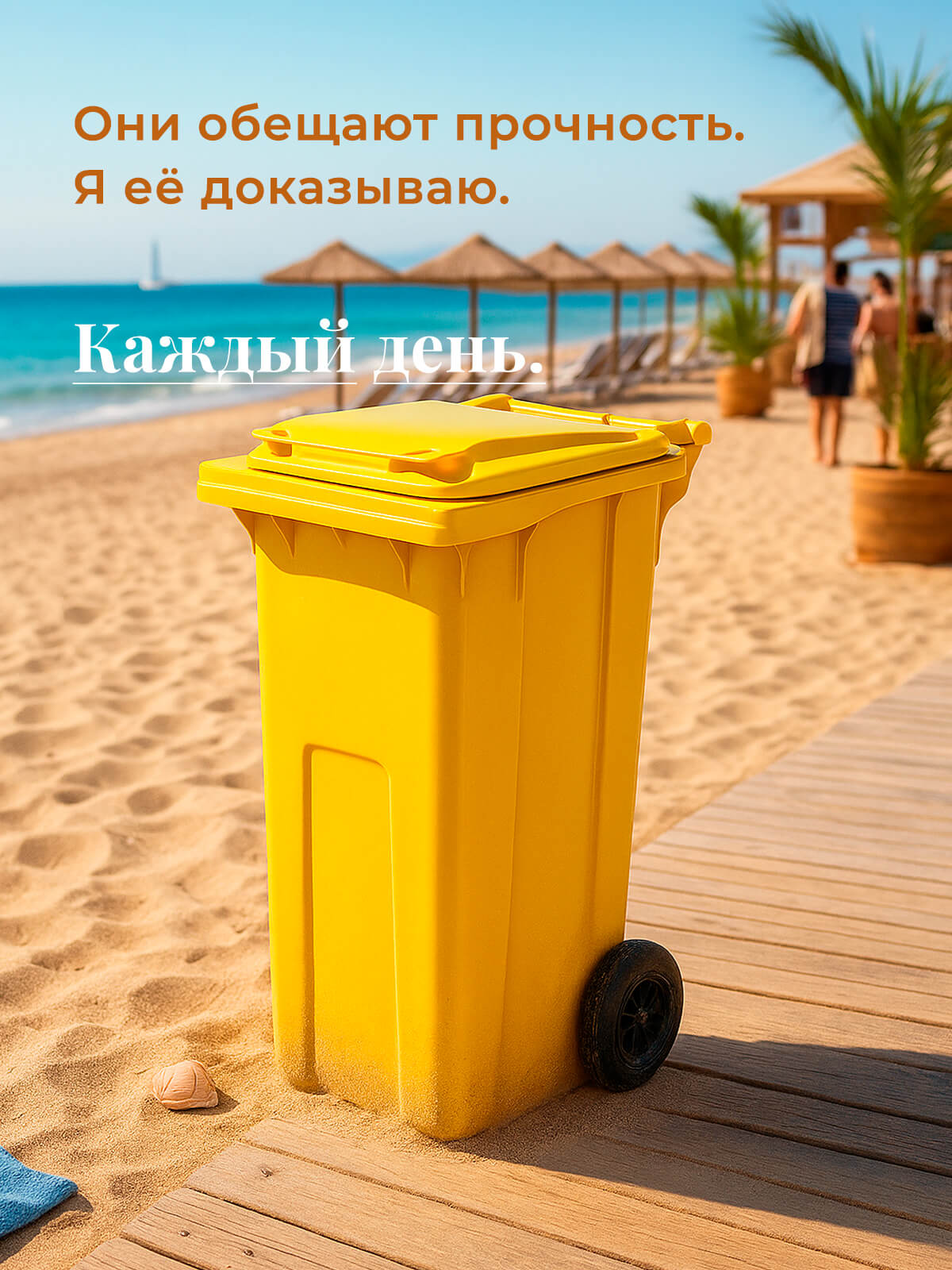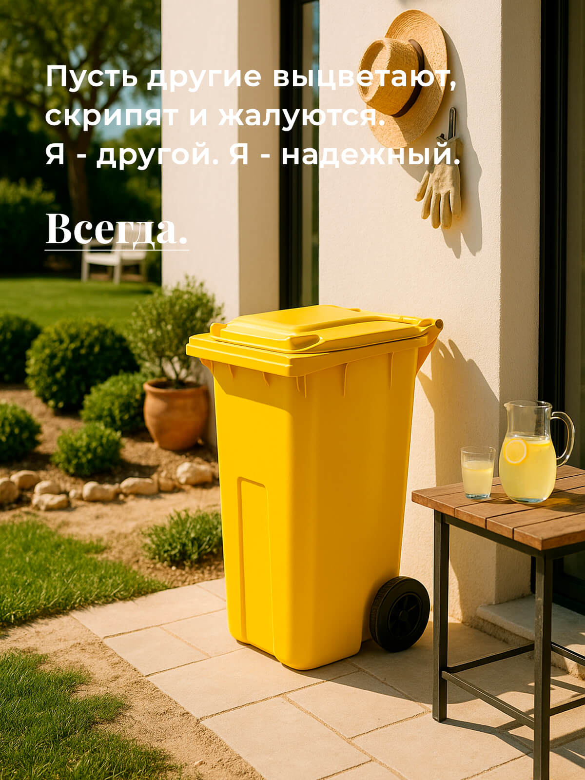 Если вам нужен долговечный контейнер для сбора мусора для эффективной организации отходов и раздельного сбора пластика, жёлтый вариант станет идеальным выбором. Он сочетает функциональность, прочность и высокую заметность.
