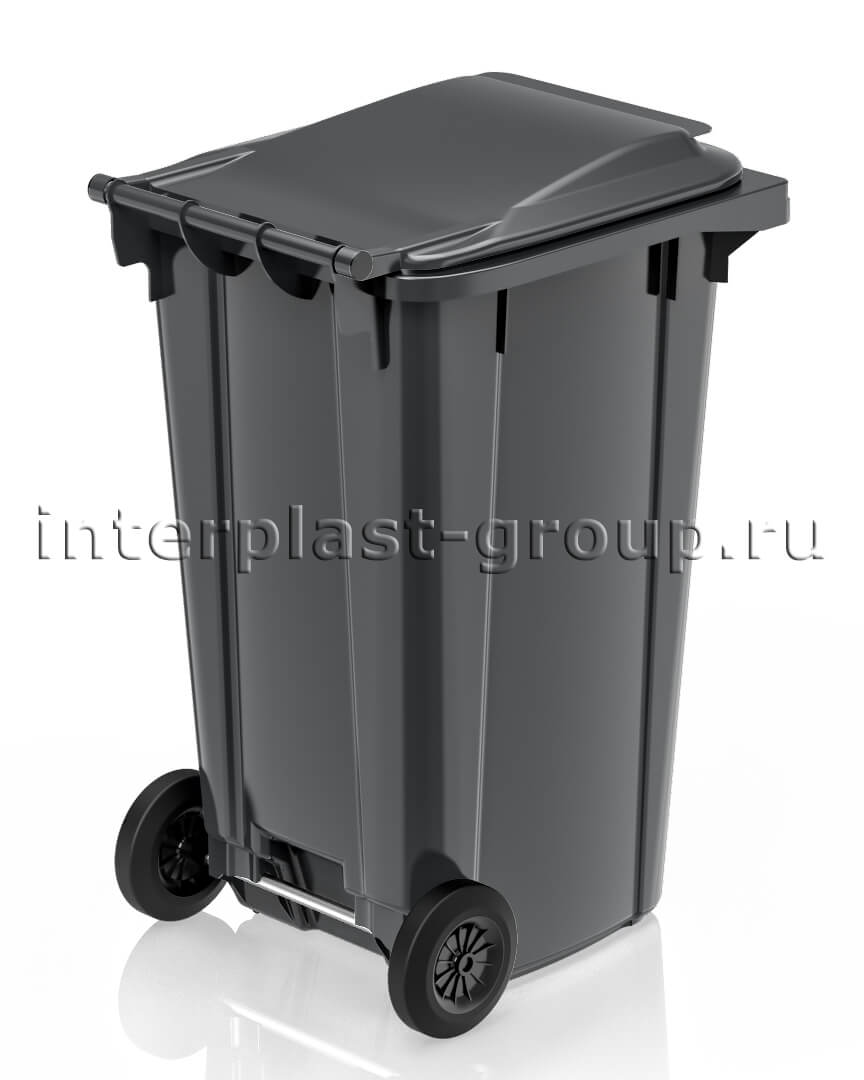 Контейнер для мусора 240 л с крышкой на колесах серый