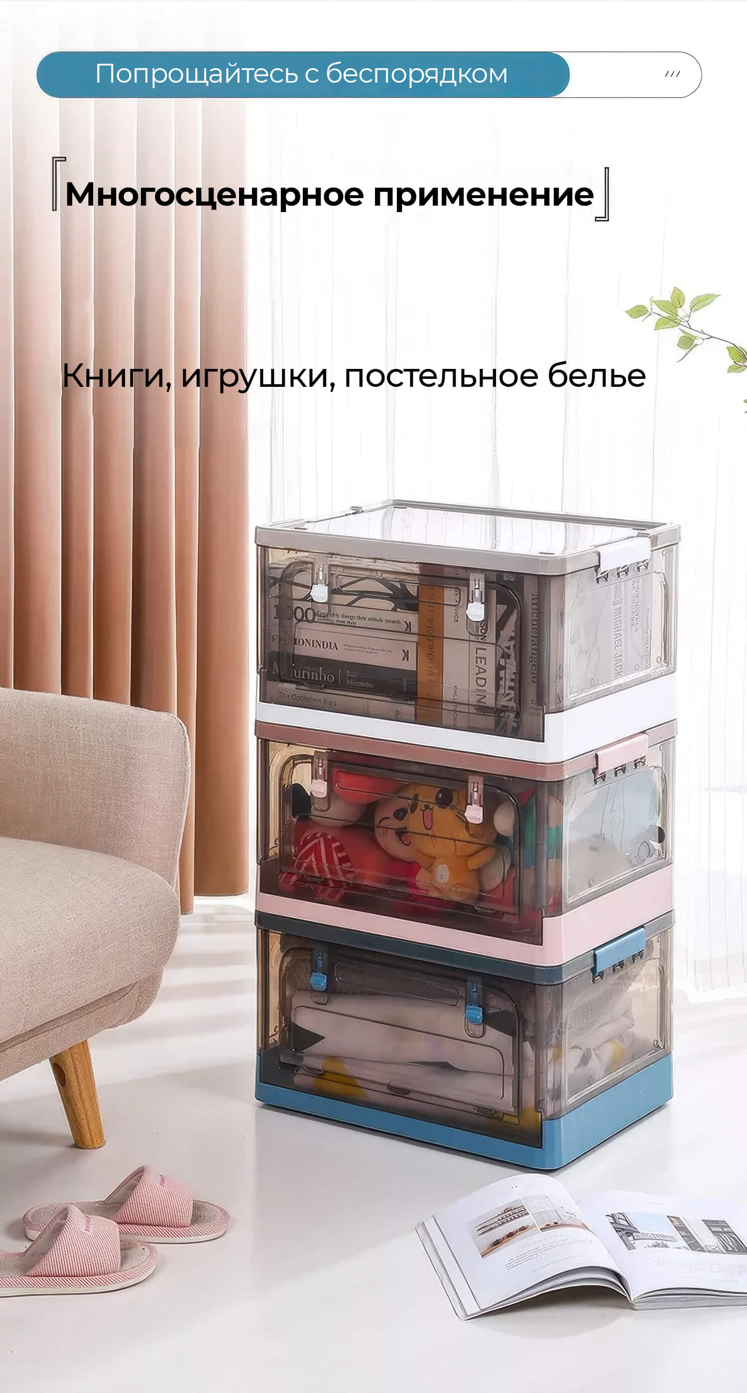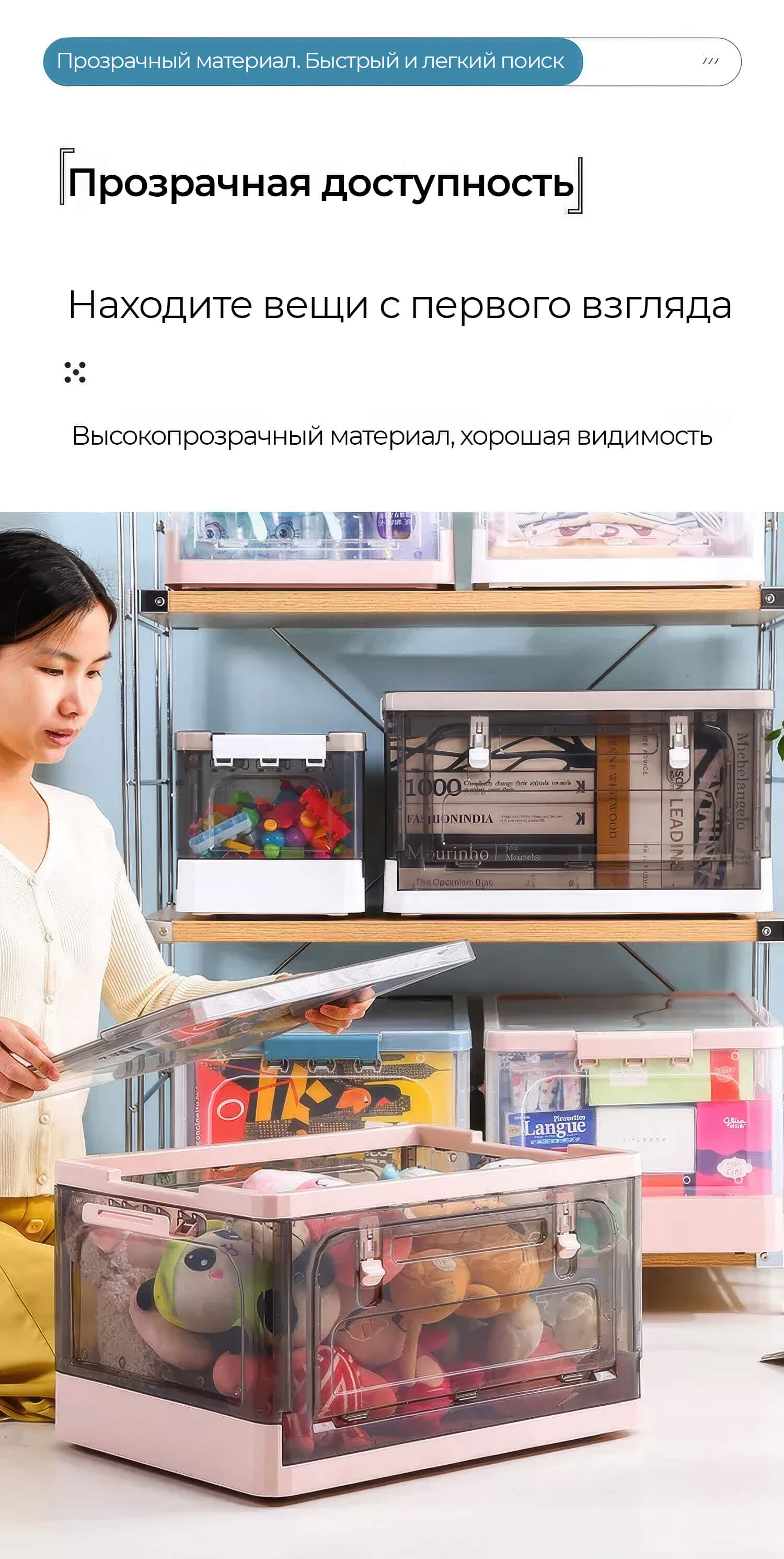 Функциональный пластиковый складной ящик сочетает в себе элегантный дизайн, удобство и прочность. Прозрачные стенки с теплым коричневым оттенком создают стильный внешний вид и позволяют легко видеть содержимое, а белое дно добавляет аккуратности. Пластиковый контейнер идеально подходит для хранения одежды, игрушек, документов, бытовых принадлежностей и мелочей.