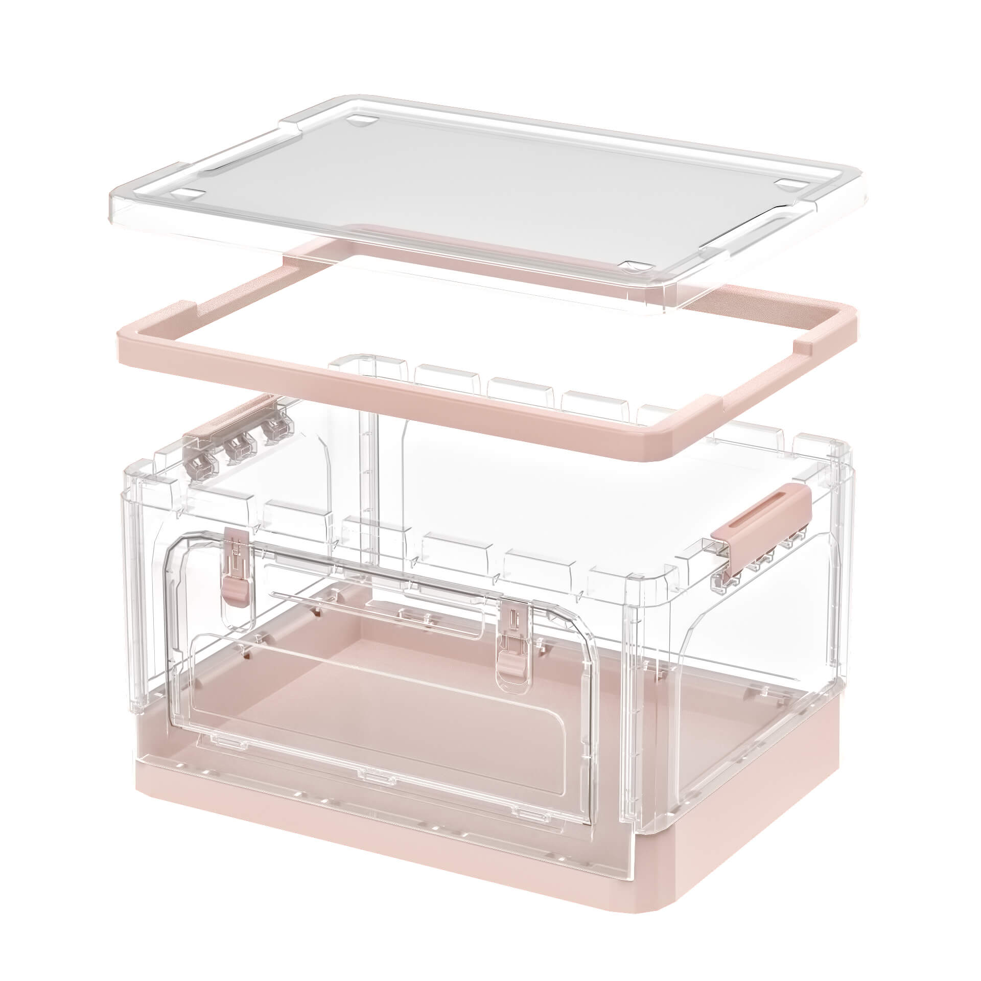 Функциональный пластиковый складной ящик – идеальное решение для организации пространства. Прозрачные стенки позволяют легко видеть содержимое, а нежно-розовое дно придает изделию аккуратный и современный вид. Пластиковый контейнер отлично подходит для хранения одежды, игрушек, бытовых принадлежностей, документов и других мелочей.