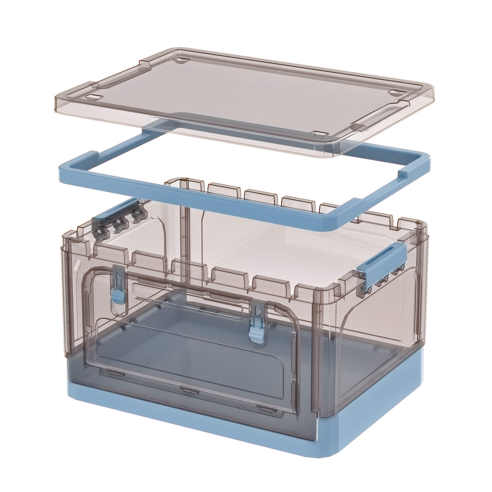 Практичный пластиковый складной ящик представляет собой идеальное сочетание дизайна и функциональности. Прозрачные стенки с коричневым оттенком позволяют легко увидеть содержимое, а глубокое синее дно придает изделию стильный и современный вид. Пластиковый контейнер идеально подходит для хранения одежды, игрушек, бытовых принадлежностей, документов и других мелочей.