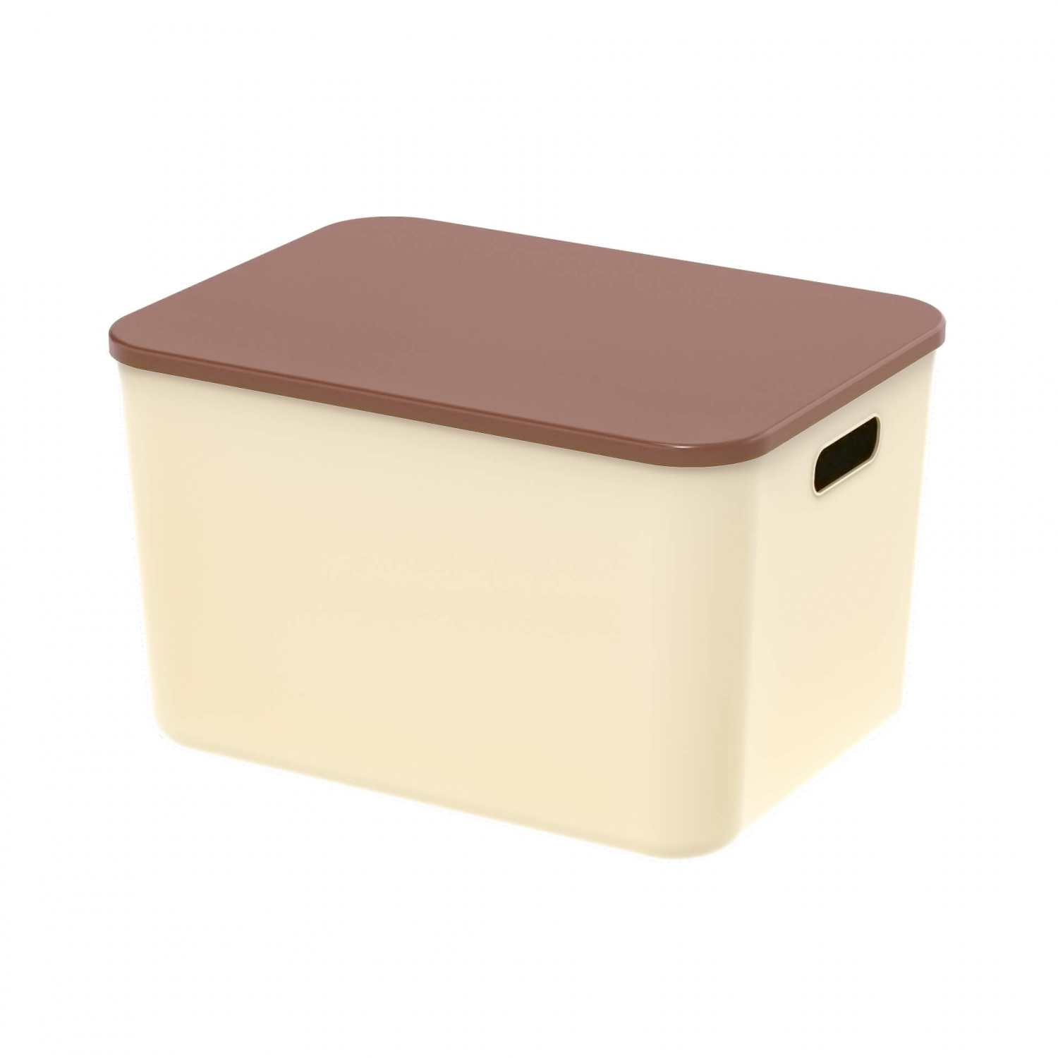 Ящик пластиковый вкладываемый 410х305х245 мм, бежевый, с коричневой крышкой и открытыми ручками – практичное и удобное решение для хранения