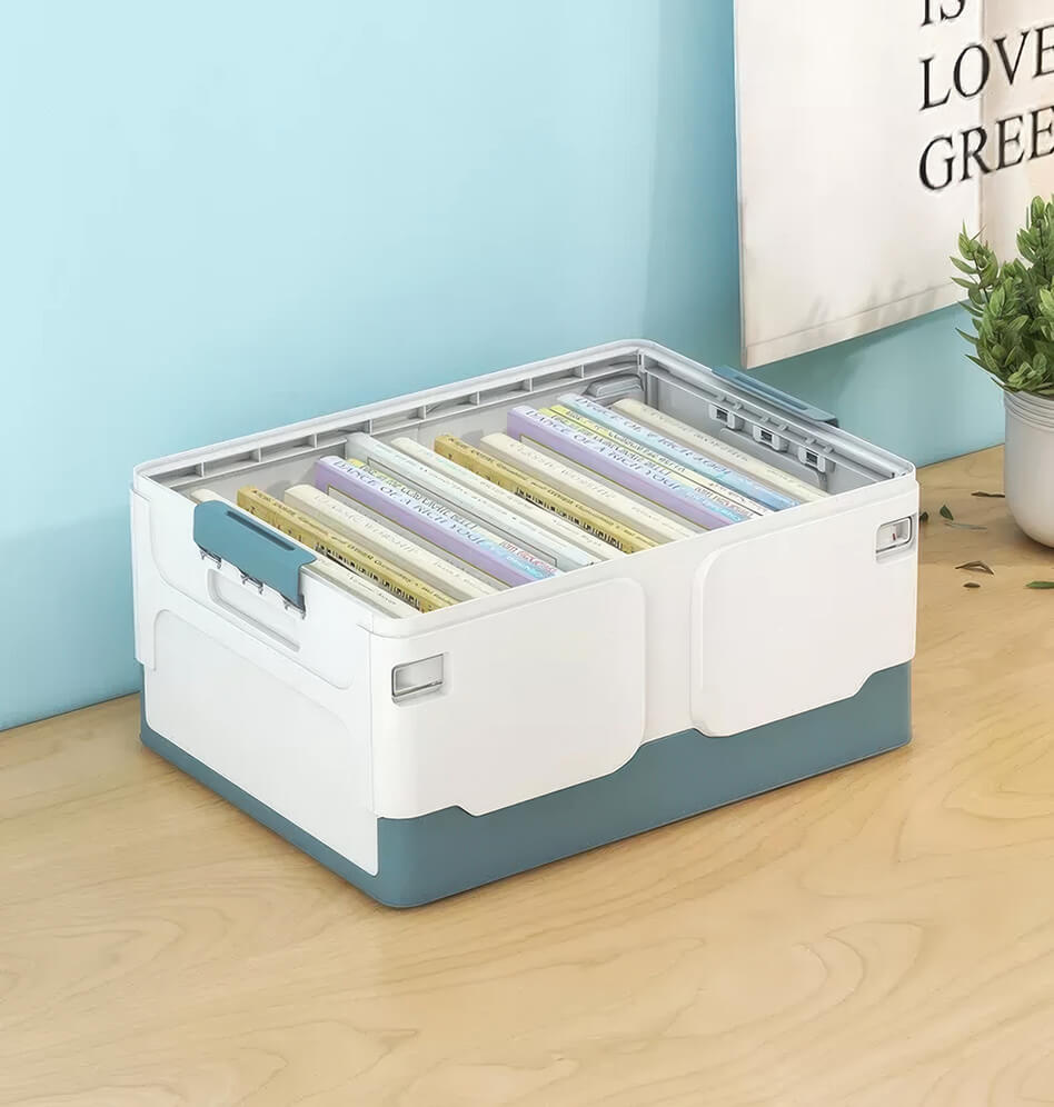 Пластиковая коробка с крышкой защищает содержимое от пыли и влаги, а прочная конструкция гарантирует надежность и долговечность. Складной контейнер легко складывается, экономя место, когда не используется, а удобные ручки обеспечивают комфортную переноску.