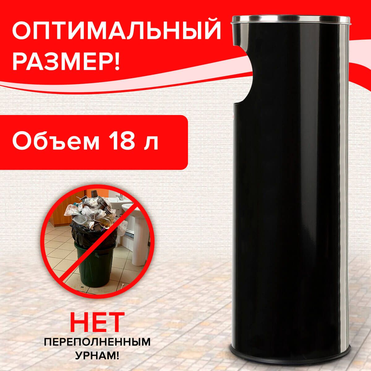 Урна с пепельницей 18 литров, нержавеющая сталь, черная, LAIMA PROFESSIONAL в Ялте
